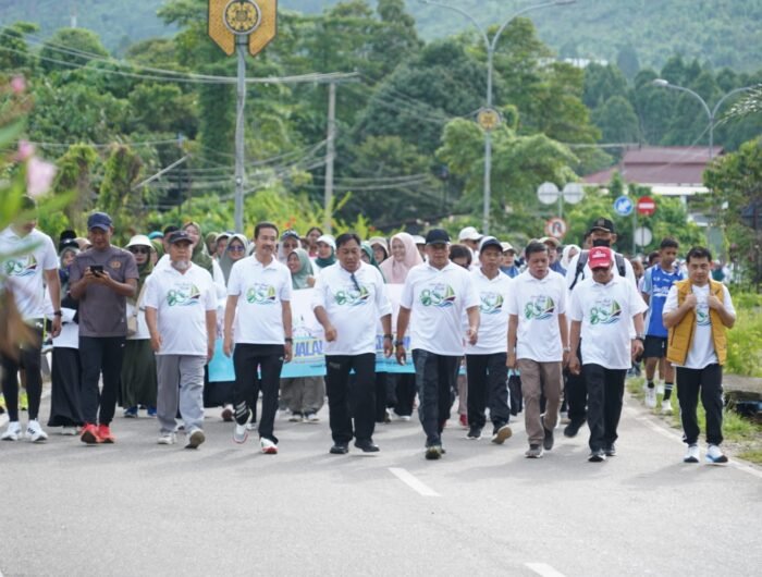 Luwu Timur, Respublica— Staf Ahli Hukum dan Pemerintahan, Aswan Aziz melepas peserta Jalan Sehat Kerukunan dalam rangka memperingati Hari Amal Bakti Ke-80 Kementerian Agama RI yang mengusung tema “Umat Rukun dan Sinergi, Indonesia Damai dan Maju” di bundaran Bumi Batara Guru (BBG), Malili, Sabtu (13/12/2025).