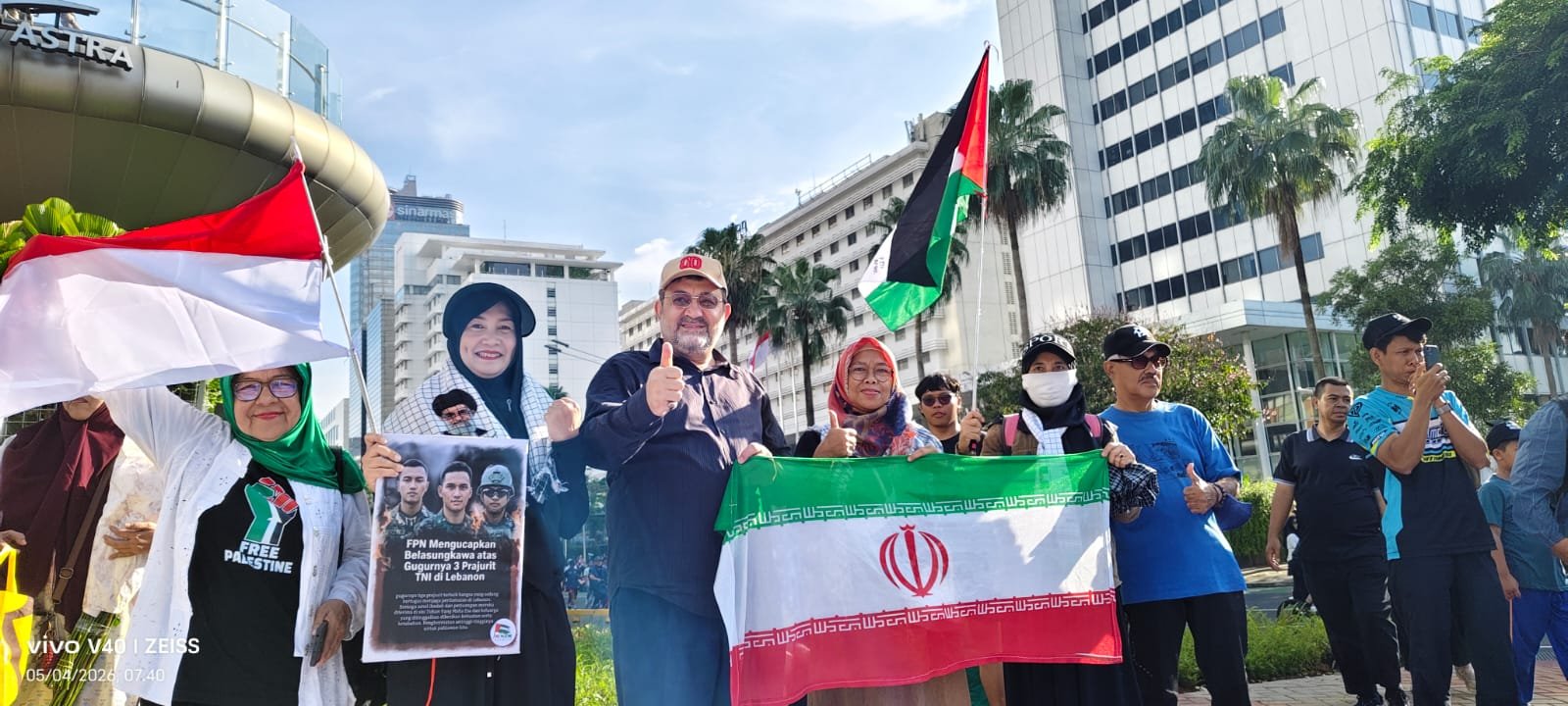 Kehadiran Duta Besar Iran, Mohammad Boroujerdi, turut menjadi sorotan. Ia tampak berfoto bersama peserta aksi di lokasi.